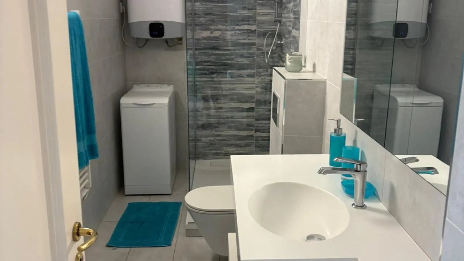 - Badezimmer mit italienischer Dusche und WC mit Handbrause ;