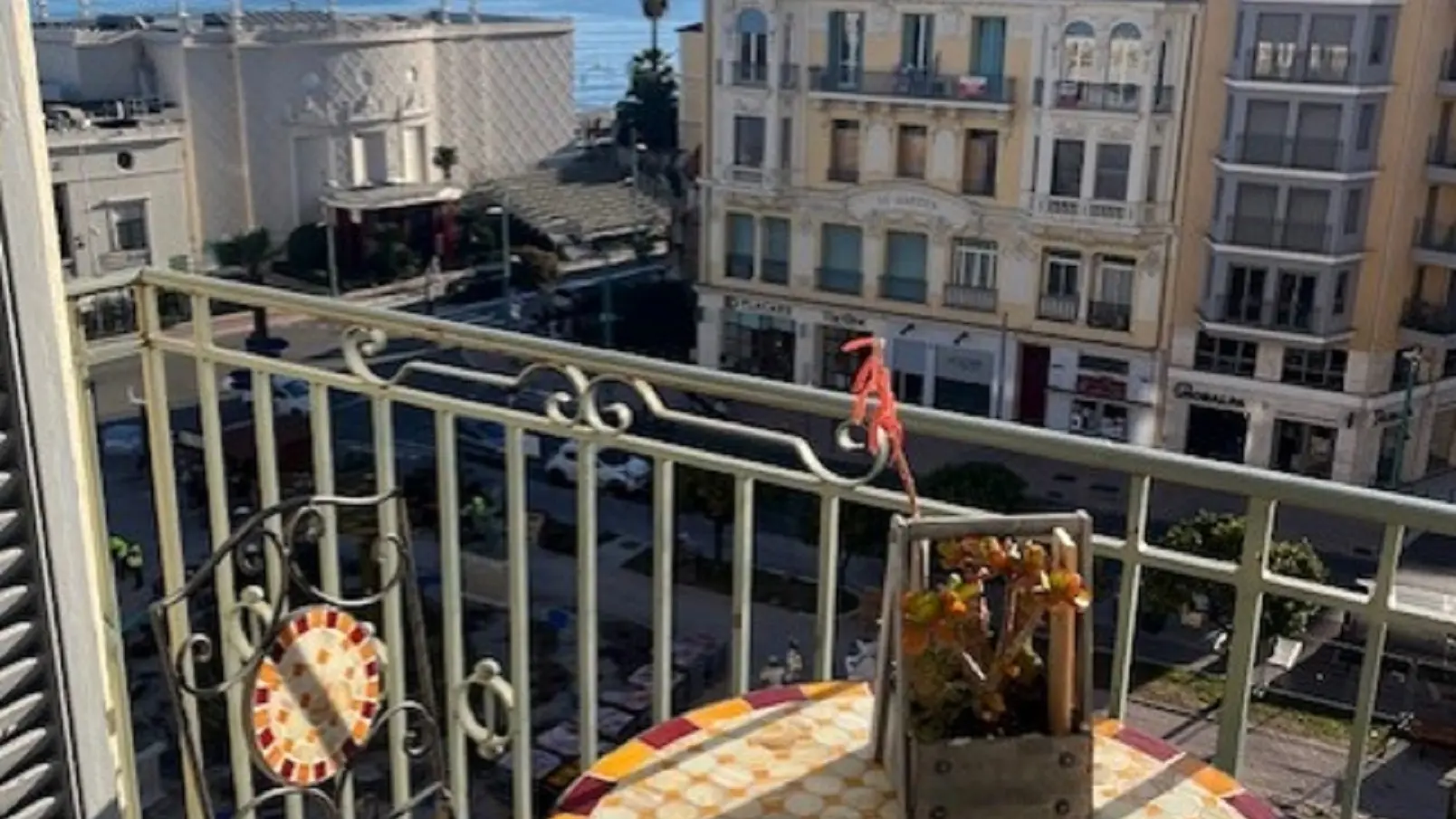 Charmante, geräumige und helle Wohnung für 2 Personen mit einem außergewöhnlichen Blick auf das Meer und die Biovès-Gärten. Ideale Lage im Stadtzentrum im 4. Stock mit Balkonen in der Nähe von allen Annehmlichkeiten.